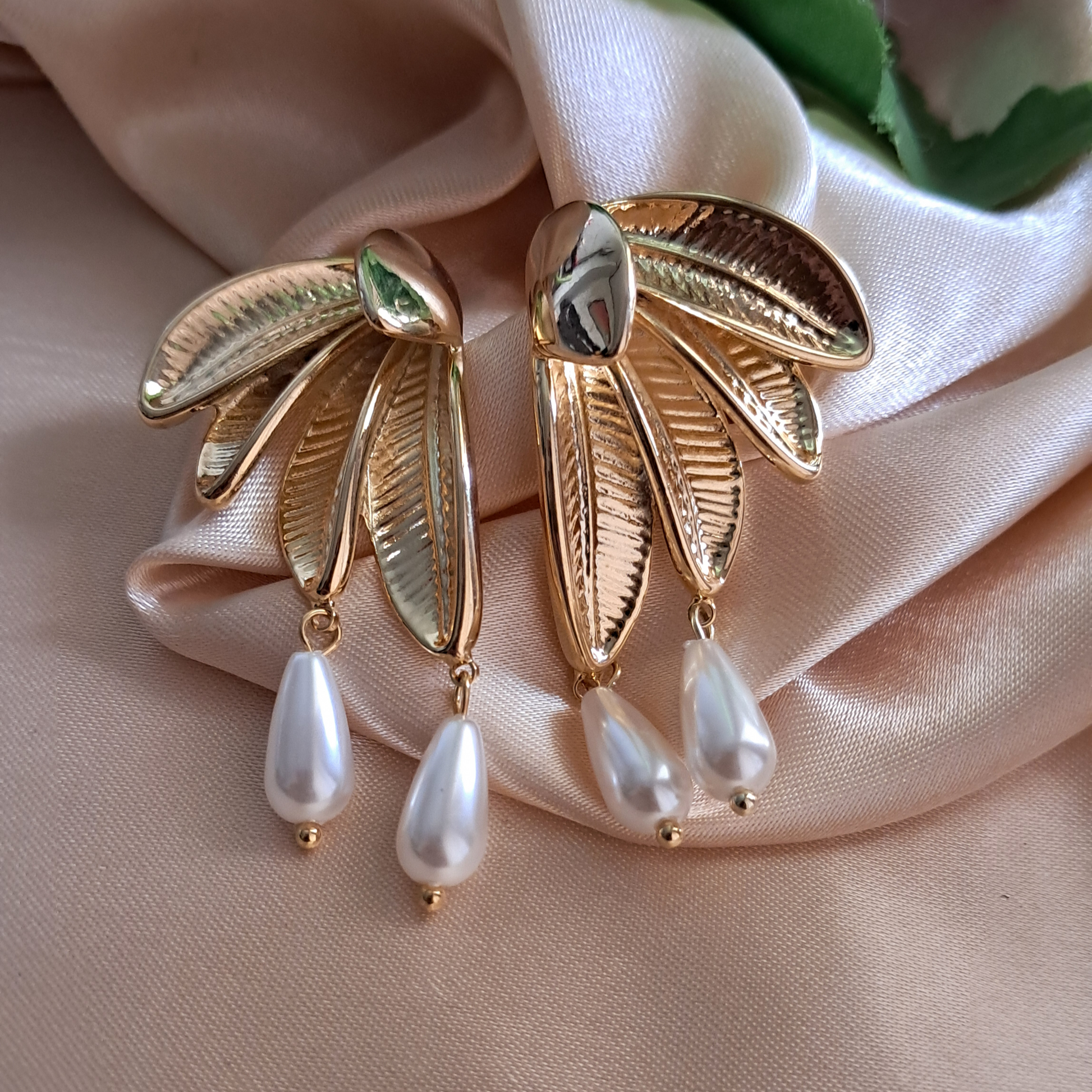 Add a fun sparkle to your party look with these gold-tone leaf earrings featuring charming white pearls ⨠Their playful design brings a lively twist to classic elegance, perfect for dancing the night away or brightening up any celebration. Lightweight and eye-catching, they're the perfect accessory to keep your style fresh and joyful.